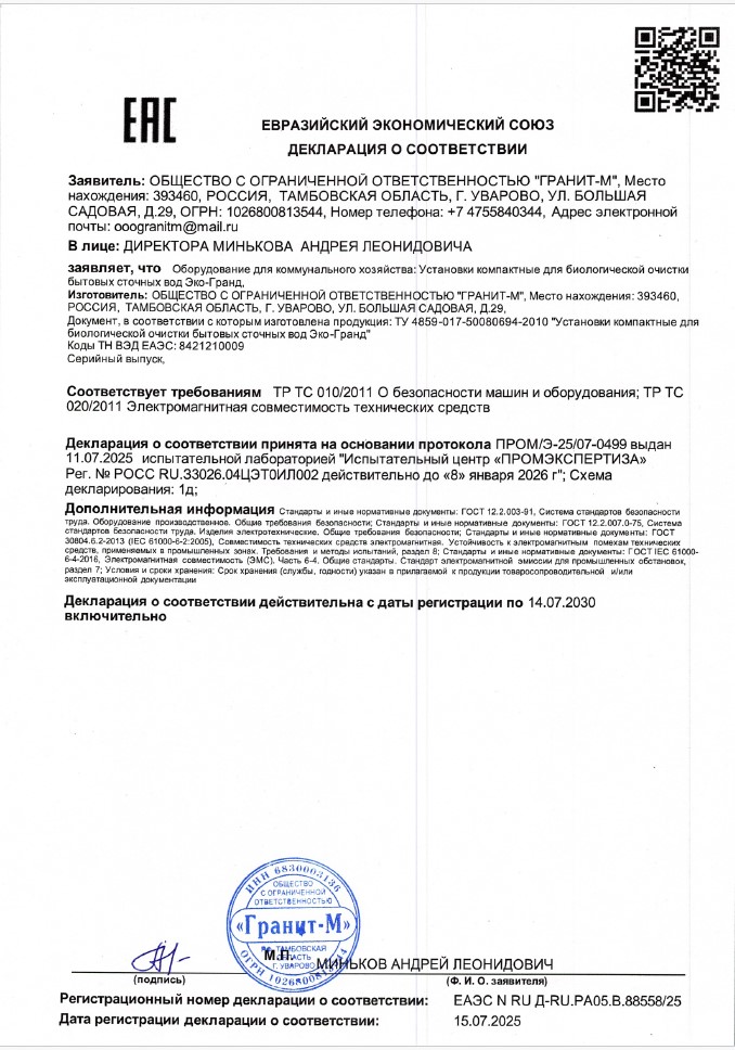 • Длительный срок службы Эко-Гранд 3. Станция работает не менее 50 лет.